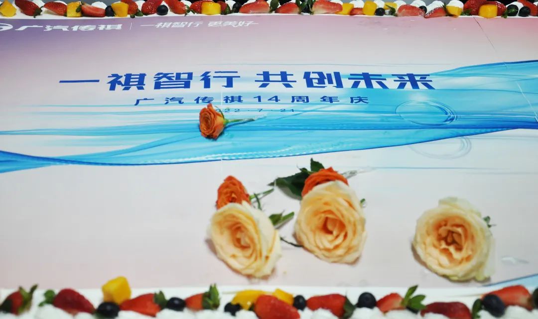 随着午餐时间渐渐接近,一份具有14周年庆宣传主题的蛋糕