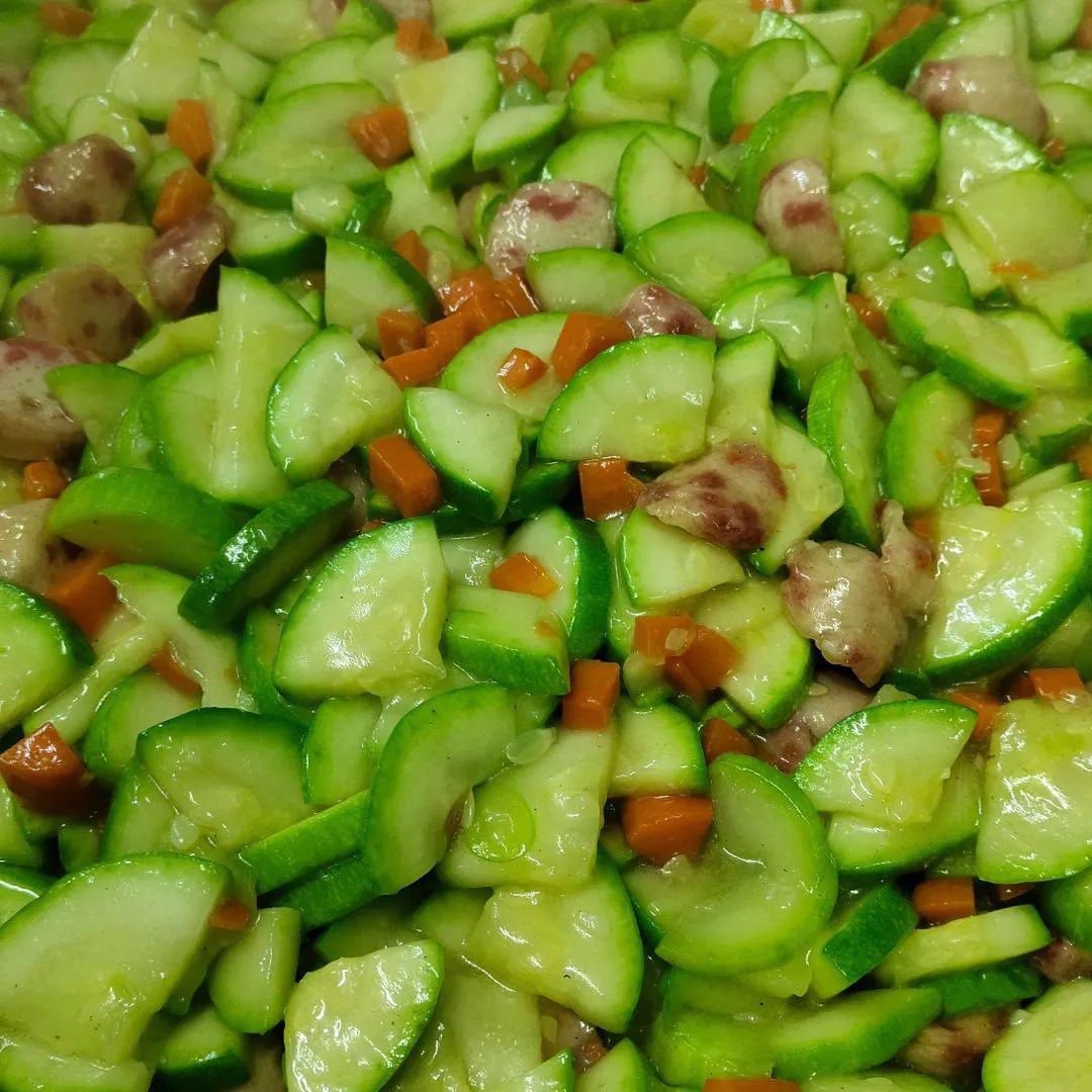 大部分蔬菜由无公害基地蔬菜直供,现场清洗、切件、加工、制作、烹调、分餐。